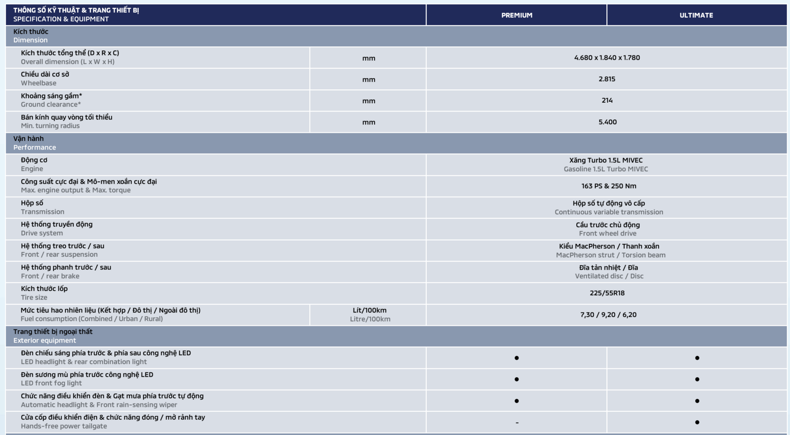 Mitsubishi Destinator Premium trang bị hệ thống đèn LED toàn phần với tạo hình chữ T trước và sau, nâng cao khả năng nhận diện. Cản trước được thiết kế theo các đường nét khí động học mượt mà tạo sự liền mạch cho tổng thể.