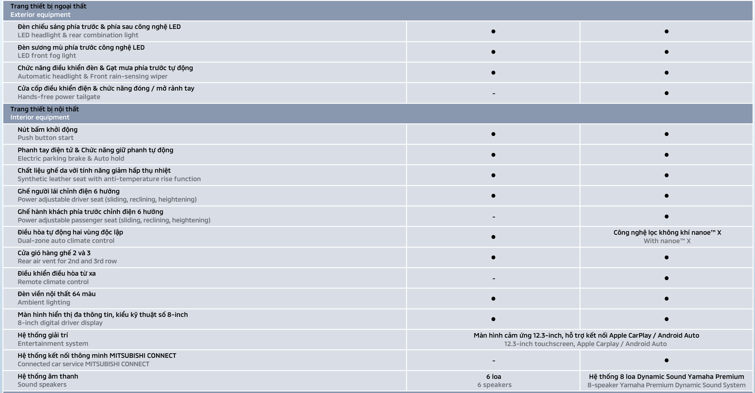 Mitsubishi Destinator Premium trang bị hệ thống âm thanh Dynamic Sound Yamaha Premium, mang đến trải nghiệm âm thanh sống động với bốn chế độ tùy chỉnh: Lively, Signature, Powerful và Relaxing, giúp cá nhân hóa trải nghiệm theo sở thích.
